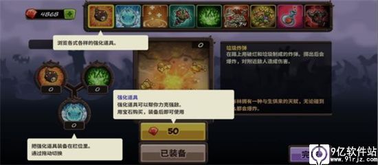 7、道具:战役中击败敌军有几率可以获得红色宝石,积攒到一定数量可在宝石商店购买不同的道具。