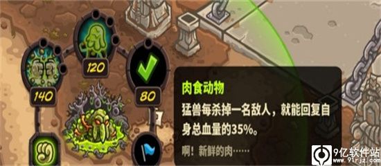 肉食动物这个技能主要是增强作为地面部队的沼泽怪兽,这个回复的效果也还是挺高的,由于沼泽怪兽本身的伤害以及血量都还是很高的,这个技能使得即使作为地面部队,沼泽怪兽还是能够打出一个很高伤害的。