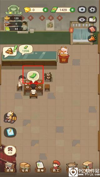 9、现在我们可以准备迎接客人的到来,客人来了,可以点击客人头上的需求,对其进行上菜;上完菜后点击客人头上的钞票就可以查看消费的金额以及所得的利润;