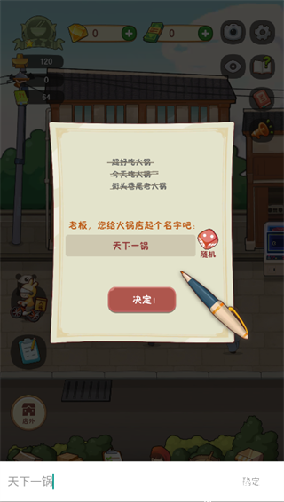 7、准备好之后,玩家需要给自己的火锅店取一个响亮一点的名字;