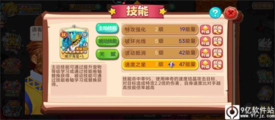 技能状况上文中已有介绍,当技能升级功能开启时,在感觉输出力不从心的时候可以考虑升级技能,由于技能升级所需材料主要靠宠物放生获得,所以这个材料还是比较好获得的。在获得第四个技能后,如果初始宠物还在主力阵容内,优先升级第四技能。