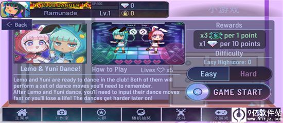 Easy难度下每1分可获得2倍Bits,每20分可获得一个Gems;Hard难度下每1分可获得1倍Bits,每20分可获得一个Gems。
