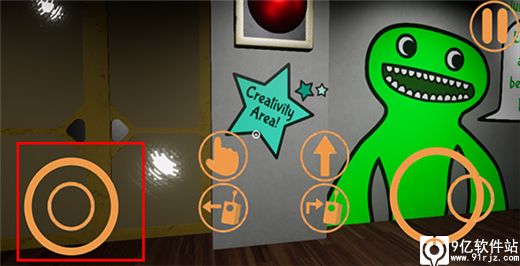 2、在右侧是移动方向的操作,手指点击则是互动功能。