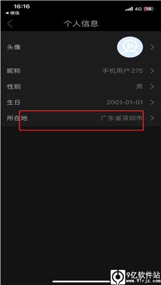 4、选择页面中的“所在地”