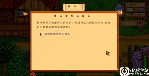 1、点击星露谷物语破解版游戏界面右侧的感叹号(日志),进入列表找到关于斧头的任务。