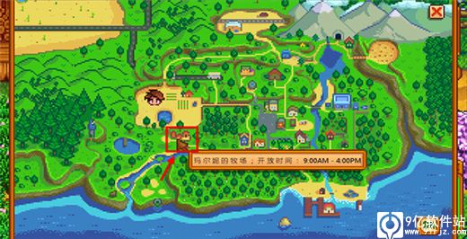 3、那么接下来就要在地图上找到在玛尔妮农场了。位置:自家农场右下侧一点点。