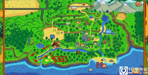 4、斧头其实是在玛尔妮农场的南边。下图已经标明位置了,箭头是行走方向。