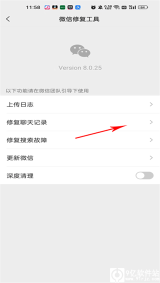 4、在修复工具界面,点击修复聊天记录。