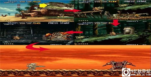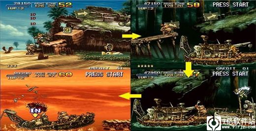 玩家选择走上面的路线,而且一直走到头就见到BOSS了。这是合金弹头3手机版游戏中相对比较简单的路线,整个过程都是中规中矩的。不过也失去了各种冒险的快乐。