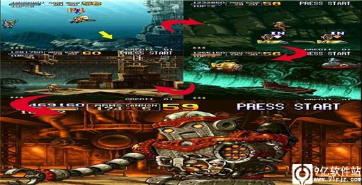 合金弹头3手机版在这里玩家会遇到巨型的鳗鱼和螃蟹,潜水艇可以保命。玩家只要不被海鳗袭击就不会有事。有三次被击中的机会,水下路线也因为有潜水艇大大降低难度。从水中出来之后就直接面对一关BOSS。载具和其他路线的稍微不同