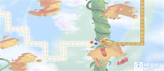 2、游戏一开始会有两个球在格子组成的面上互相转圈,每点一下小球就会在方格里前进一步。方向由点击时小球在的格子为准。