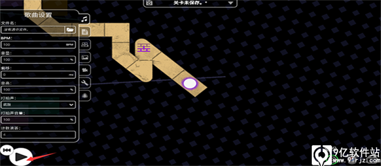 3、点击控制小球走到右边的圆圈里,开始时会有点难,跟上音乐的节奏来按,每次重音点击一下,会控制小球走直线。快半拍则是向上或者向下。