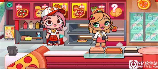 点击上面的招牌就会出现披萨啦,有披萨还有可爱的人物
