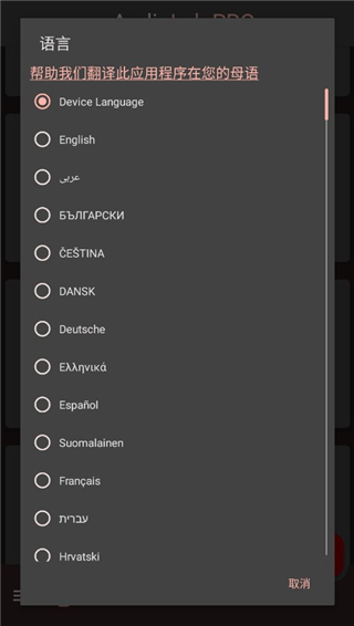 1、在本站下载audiolab中文版后,在手机上打开应用2、点击左下角的语言标志