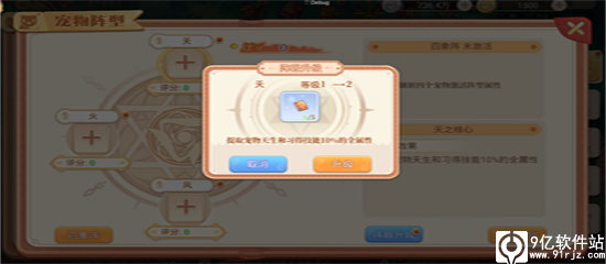 点击宠物阵型,上阵宠物可以激活上阵属性,上阵4个宠物,可以激活阵型属性。