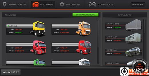 4、自定义卡车的车灯、挡板、喇叭、指示灯等效果,3D化的大地图背景,从性能到外观变化。