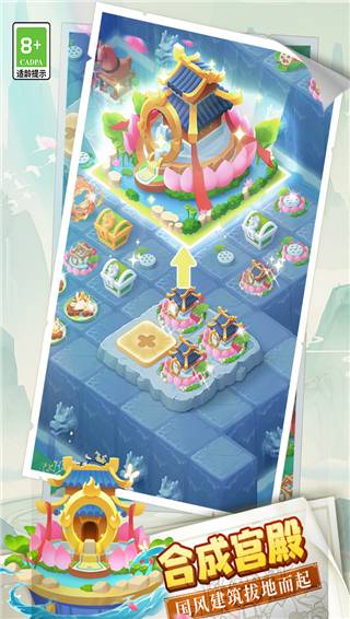 一、合成攻略游戏基于三合一、五合二的玩法模式进行,遵循万物皆可合成的理念,让玩家在沉浸感受合成爽感的同时,还能收获超多精美的建筑和装饰物,以此来打造专属于自己的小小仙岛。