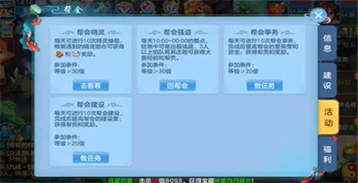 3.帮会任务,每天完成帮会建设任务不仅可以提升帮会建设,还可获得帮贡奖励;
