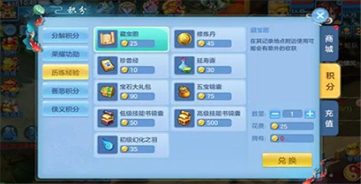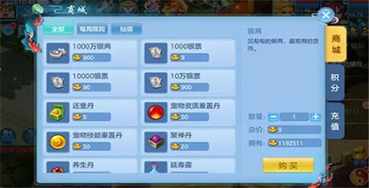 4.交易中心、积分兑换、商店兑换,这几种基本方式和银两的获得途径差不多。