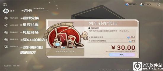 3、下面我说一下不太好理解的商店:纠缠=星轨专票,相遇=星轨通票,其它都差不多唯一需要注意的是,星芒(也就是原神的星辉)是可以买常驻五星的专武的(30抽的星芒)