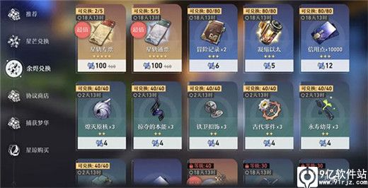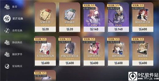 游戏中也有类似原神的星尘/星辉和对应商店的设计。对于抽到重复角色会获得对应代币,可以在定期轮换的商店里兑换商品。