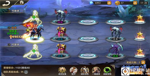组织好队员后,队长就可以安排进入战斗!可以看到战斗路线上有不同等级的怪物:简单、普通、困难、地狱,玩家们需要进行一定的策略安排,尽量让三条线路的玩家均能全部挑战成功,最终获得三星奖励!