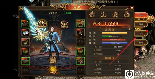 第四步,进入角色界面后,点击内功按钮,如下图所示。