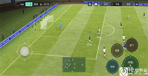 比赛中,玩家可以使用手势射门,根据划屏的方向及力度,球员将做出相应的射门动作,若向球门划出直线,大概率球员会进行大力抽射;若向球门划出弧线,大概率球员会进行搓射。
