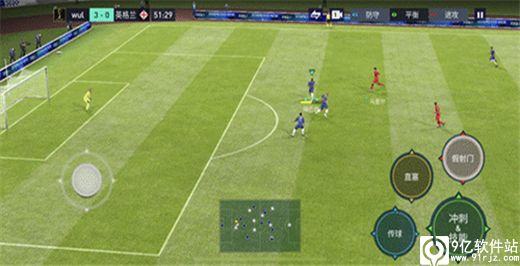 在比赛中,玩家左滑射门按钮时,球员将会做出假射门的动作,从而过掉防守队员。