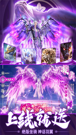 3、极品坐骑史诗神装,羽翼时装任君搭配!