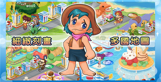 1、独特的游戏场景共有台湾、大陆、日本、美国四个场景可供选择,四个关卡各有风情特色;地图路径也由原本中规中矩的正四方向,改为四十五度角俯视的八方向路径来连结,将使游戏画面更为活泼热闹。