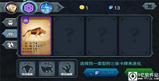 一、战力攻略1、进化提高兽王的能力。注意:进化需要消耗三张卡牌,能力增长的性价比不高,不适合前期使用,绿色蓝色的卡牌不建议使用进化,到后期为紫色卡牌进化突破紫卡的能力上限。