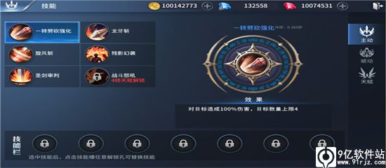 在角色界面可以切换到技能界面,技能界面显示所有你已学会的技能。可以通过快速设置将技能图标设置入快捷栏,在战斗中通过快捷键使用该技能。大部分的技能使用需要消耗一定的能量。通过升级可以提高技能伤害,需要满足相应的要求。