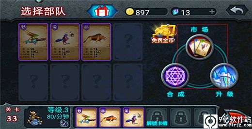 4、玩家需要通过购买卡片后合成来提升攻击力;