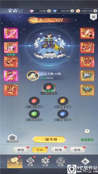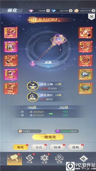 直接铸魂:进入各装备的页面均有一键提升功能自动消耗所需材料对应的铸魂石