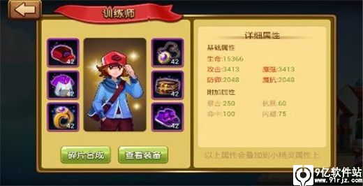 玩家在通关精英副本第一关就可以解锁装备, 装备会穿在训练师身上会提升全体上阵小精灵的大量属性。小精灵弱不怕,我们还有强大的训练师装备。当然我们的装备可以进行强化升级,强化中既不会掉级,也不会损毁装备,玩家可踏踏实实的提升自己的装备等级,从而获得更强的战斗力。