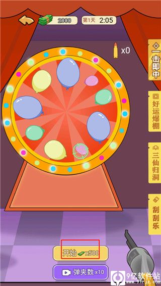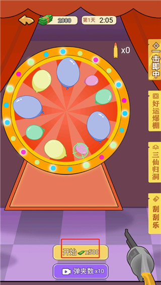 5、里面提供一击即中、好运爆棚、三仙归洞、和刮刮乐,我们点击一击即中,开始之后,玩家只需要点击射击气球,击中即可获取金钱奖励;