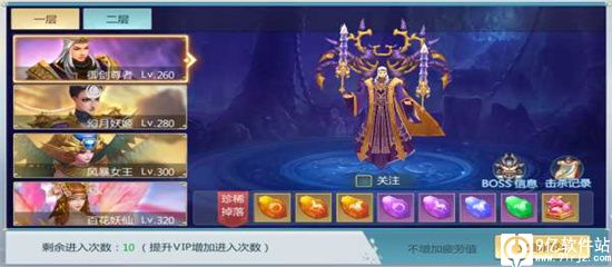 这里的BOSS不同于其他的BOSS,每击杀一个BOSS会增加相应的怒气值,每个BOSS的怒气值显示在血条下方,当上仙怒气值达到100,倒计时30s后会强制离开副本。