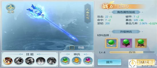 1、神兵系统在上仙们达到110级时开放,通过主界面左下角的人物进入。2、上仙们可以使用神兵精华来升级神兵,提高自身的杀伤力,神兵等级达到91,191,291,341级时还能解锁强力的辅组技能,帮助上仙们更轻松地战胜对手。