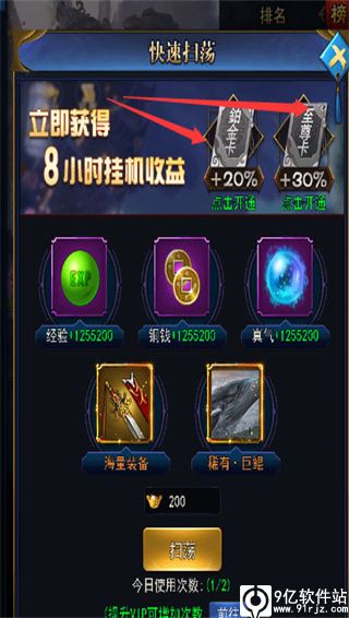 5、超值特权卡,全部永久不限时,终身享用,元宝、充值卡永久每日赠送。
