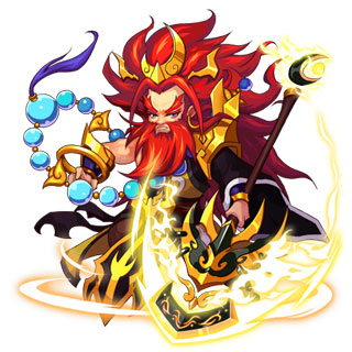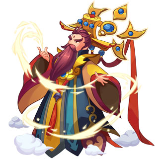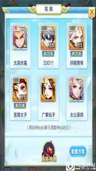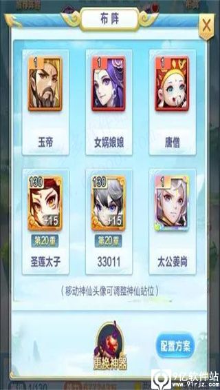 2、95级子牙、太子、玉帝、红唐僧、红女娲、主角变红唐僧。1☆貔貅、0☆火龙、0☆宝莲灯、0☆紫金元神、元始天书。站位如下图所示。