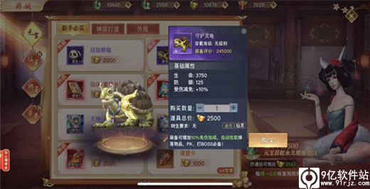 游戏内的元宝商城可通过元宝购买到各类珍惜道具、外观、天神和首饰。