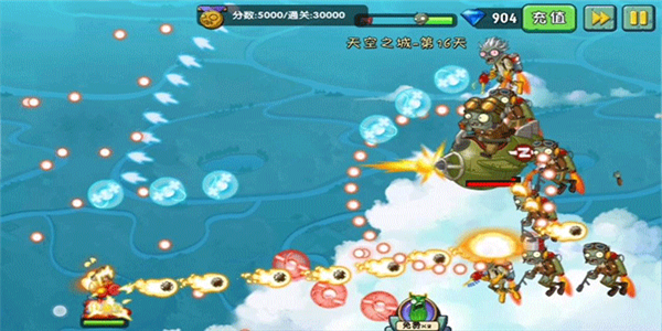 2000分到8000分之间的部分,植物升级为火焰豌豆射手。这部分也是难度最大的,因为这部分的最后,会同时出现两个小飞机。同时打两个小飞机是最耗时的。如果没有很好的躲避子弹的技巧,在这里会耗掉很多血。很多人都卡在这里无法通关。