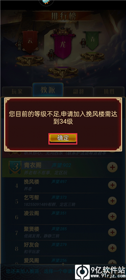 3、如果有一点需要注意的是,汉风幻想三国ol中有的教派需要你的等级达到34级的时候,才能有申请加入教派的权限