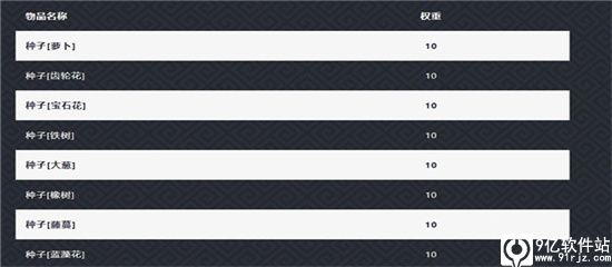 特定种子和材料获取概率 = 其他掉落物概率(13%) * 掉落物等级概率*当前等级出现种子或材料的概率(35%或50%) * (当前种子或材料的权重/种子或材料的权重之和)