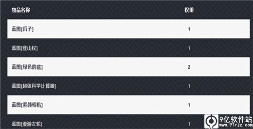 特定蓝图获取概率 = 其他掉落物概率(13%) * 掉落物等级概率*当前等级出现蓝图的概率(30%) * (蓝图的权重/当前等级掉落物中未获得的蓝图权重之和)