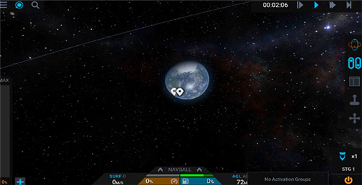 火箭发射成功之后,我们就可以进入到太空中,在太空中我们利用火箭上的尾翼进行火箭的控制,找到我们想要探索的星球,进行接近准备降落。