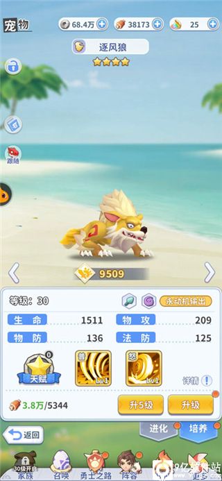 (4)升星:消耗其他宠物作为升星材料,给自己的主战宠升星,大幅提宠属性。