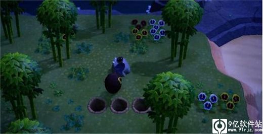 3、杂草捡取完之后,我们要在敲击石头所占的位置后边挖3个大坑,因为我们敲击石头会有后坐力,这样避免过长时间无法获得矿石。