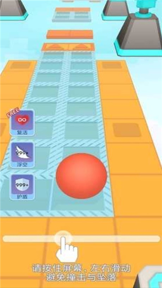 4、操作简单、一键式上手,只需左右移动小球避开障碍物、陷进等不要松手。